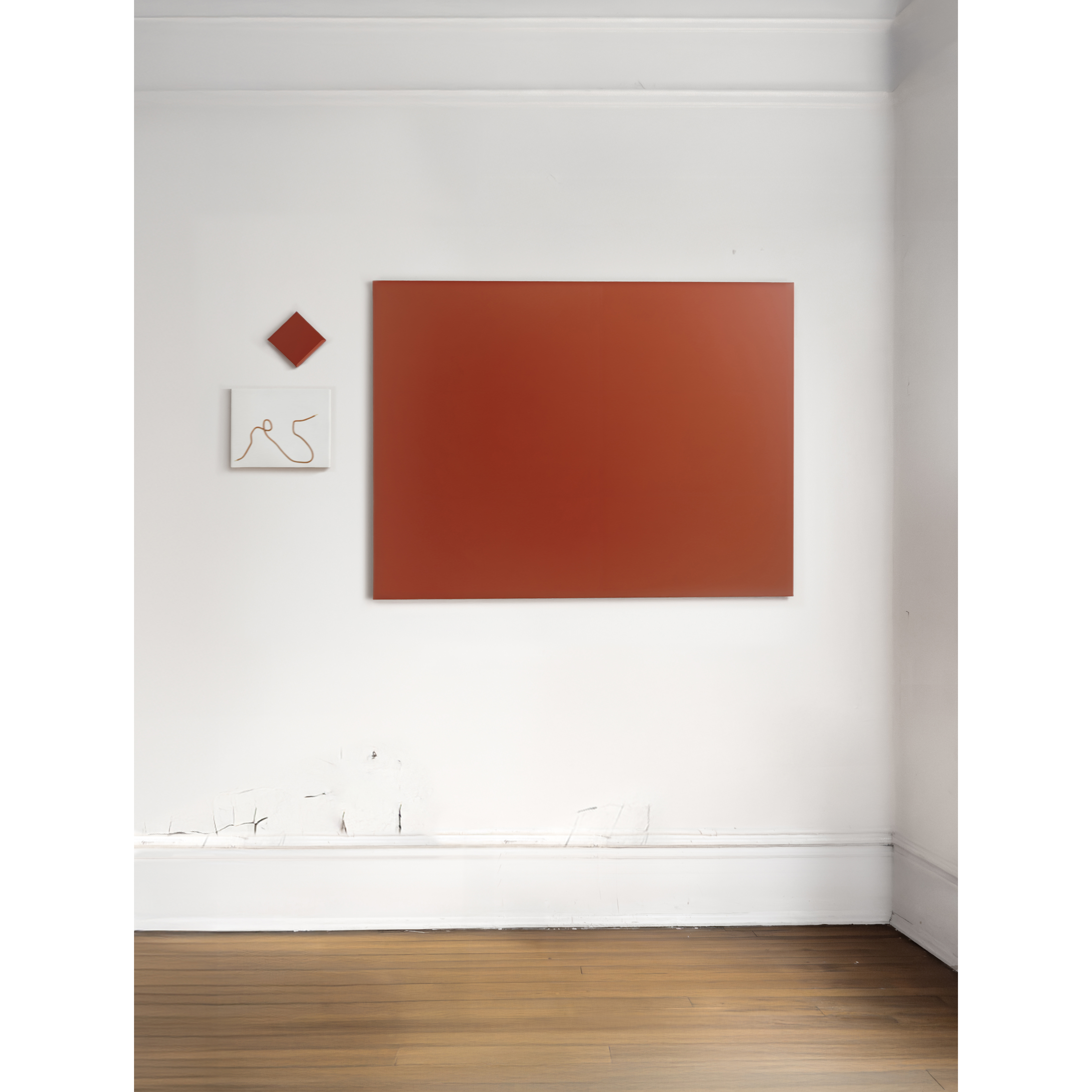 In his practice, David Monnet reflects on enduring Cartesian binaries and, through moments of tension and suspension, invites us to imagine new rhythms for relational balance in daily life. His acrylic paintings are assembled in several binary combinations: smaller canvases depict what might seem to be an insignificant, daily-life object of an electric wire, while the large canvases are non-figurative and distinctively monochrome. Disattaching the symbolic object of power (the cable) from the vast ‘neutral’ colourful emptiness (the source), David creates an eerie visual meditation on contemporary alienation.